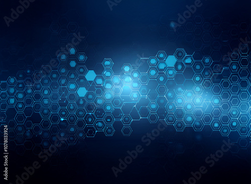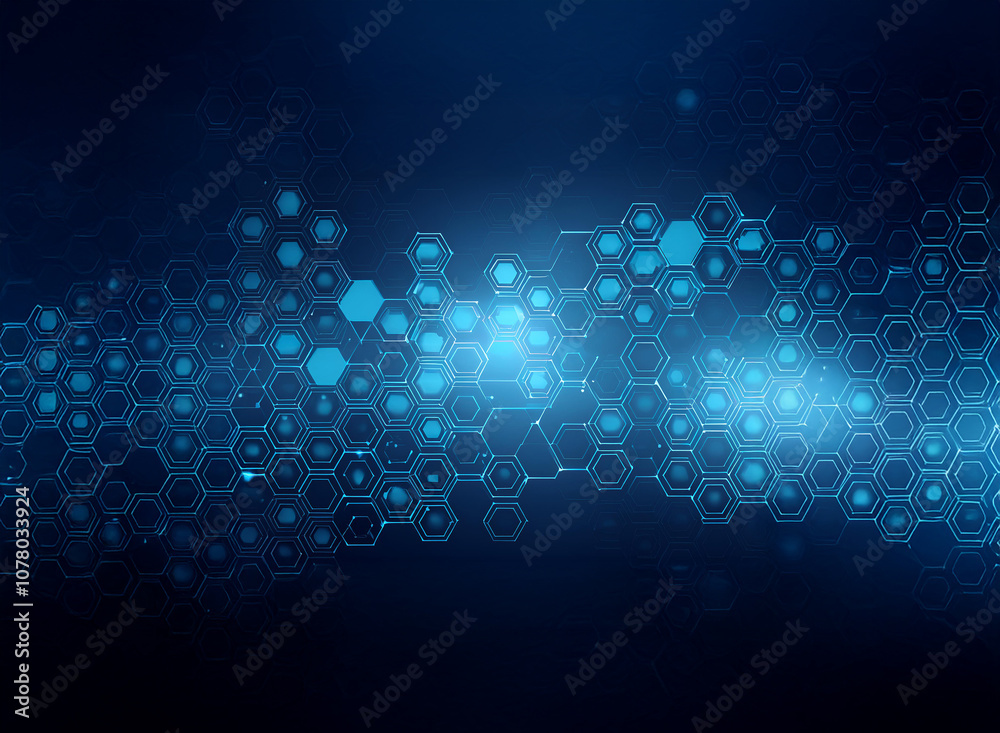 Wall mural abstract blue background with hexagonal pattern and glowing light.
