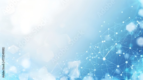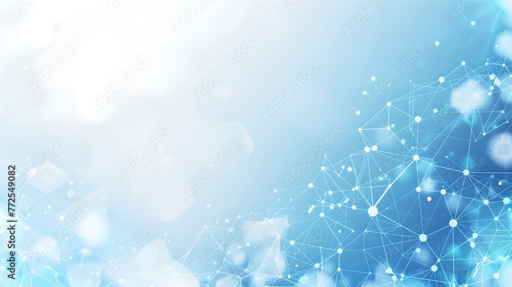 Wall mural abstract blue background with network connections. light bokeh, digital technology concept. ideal fo