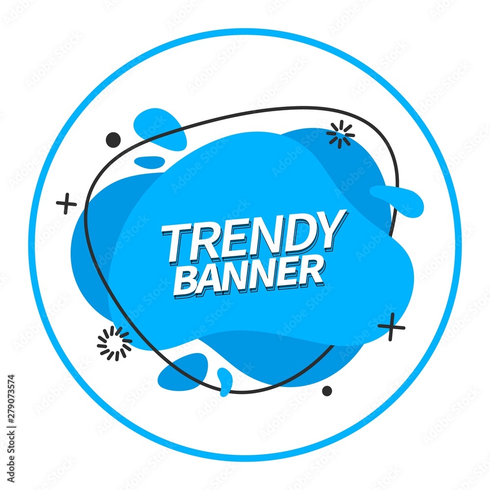 Wall mural : Abstract blue banner in the style of memphis - bright vector liquid shape banner - ready design for us