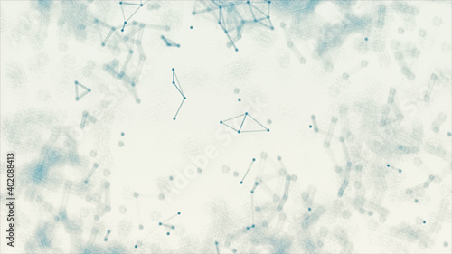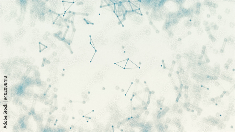 Wall mural : Abstract blue blurred geometry wireframe network and connecting dot in space on white background - fu
