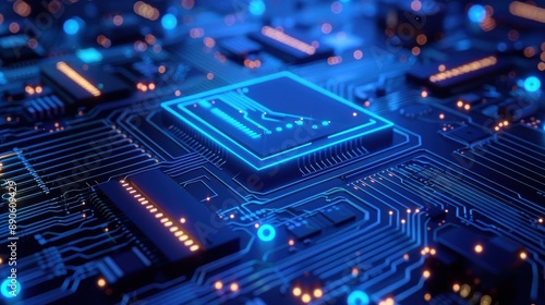 Wall mural : Abstract blue circuit board background with glowing lines and patterns, technology concept for digit