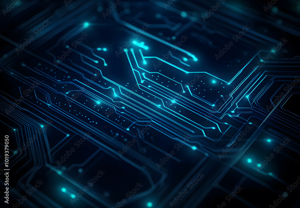 Wall mural : Abstract blue circuit line vector background design on a black background design represents technolo