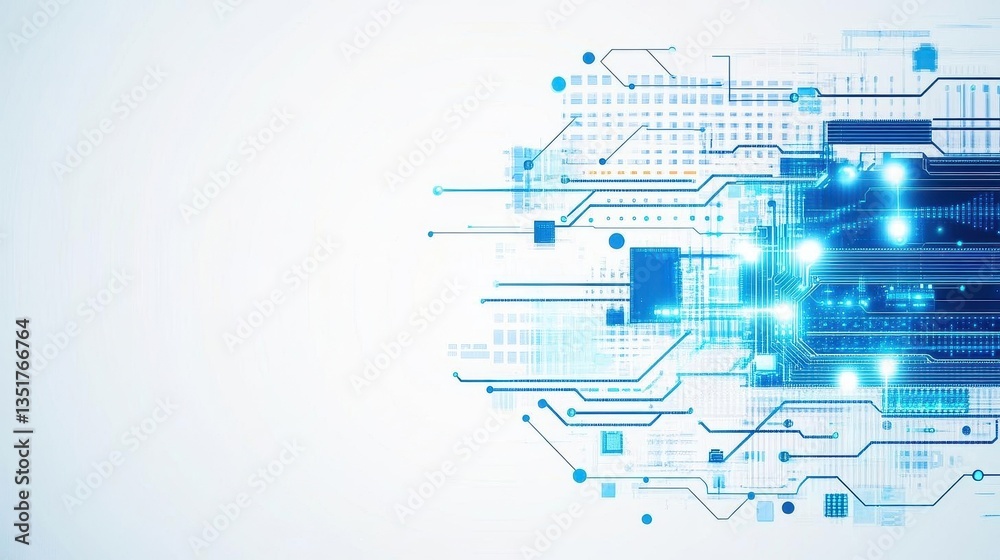 Wall mural : Abstract blue circuit lines on a vibrant background representing modern technology and digital conne
