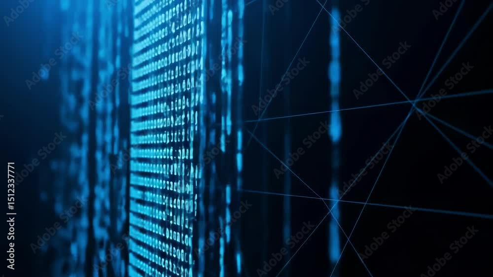 Wall mural abstract blue computer code lines on a dark background for technology concept