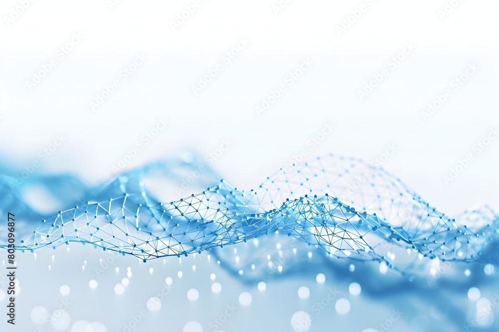 The watermark will not be included on Wall mural.: Abstract blue connection dots and lines on a white background, depicting a technological network con