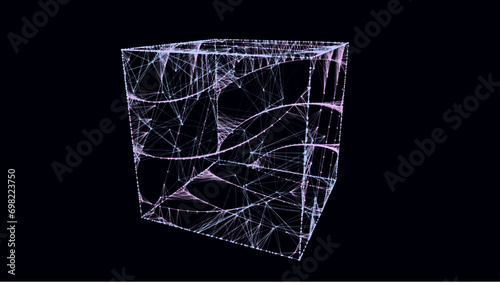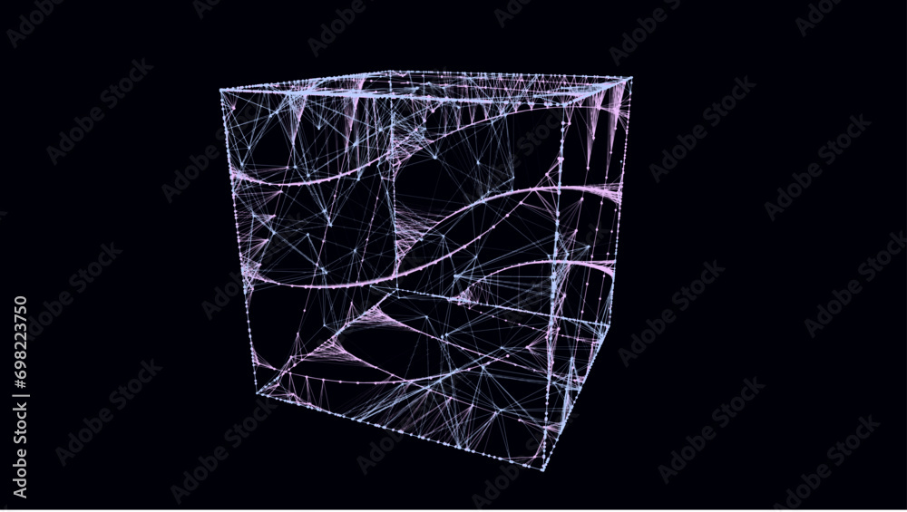 Abstract blue cube with connecting dots and lines - big data visualization - blockchain technology conWall mural