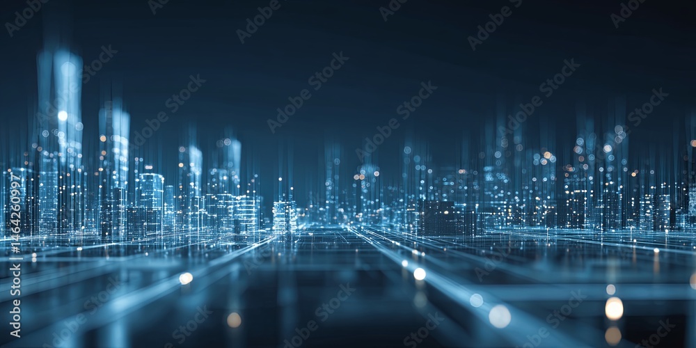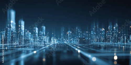 Wall mural abstract blue digital cityscape with glowing lines and light patterns representing technology and in - Wall murals Wall mural abstract blue digital cityscape with glowing lines and light patterns representing technology and in - Wall murals