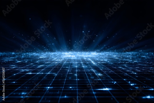 Wall mural abstract blue digital grid background with glowing light rays and mesh. digital technology concept f - Wall murals Wall mural abstract blue digital grid background with glowing light rays and mesh. digital technology concept f - Wall murals