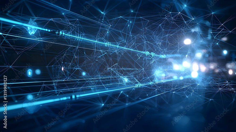 Wall mural : Abstract blue digital network representing modern technology and data transfer with glowing lines an