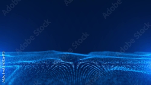 Wall mural abstract blue digital particles wave and dynamic wave of particles.