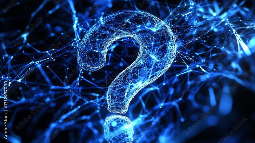 Wall mural : Abstract blue digital question mark network connections futuristic technology concept design backgro