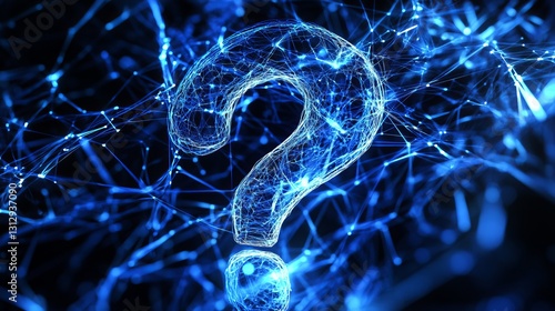 The watermark will not be included on Wall mural.: Abstract blue digital question mark network connections futuristic technology concept design backgro