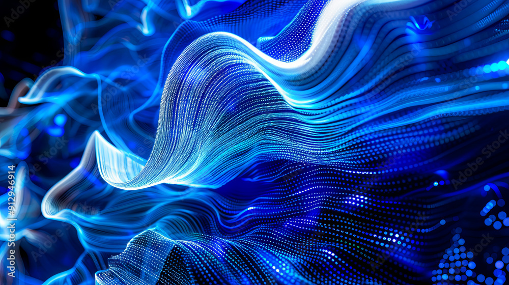 Wall mural abstract blue digital wave background with flowing particles cyber or technology background with lig - Wall murals Wall mural abstract blue digital wave background with flowing particles cyber or technology background with lig - Wall murals