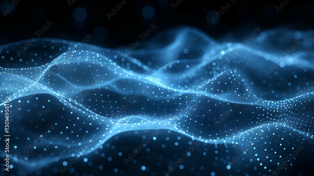 Wall mural abstract blue digital wave futuristic network design, smooth particle flow for modern technology