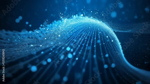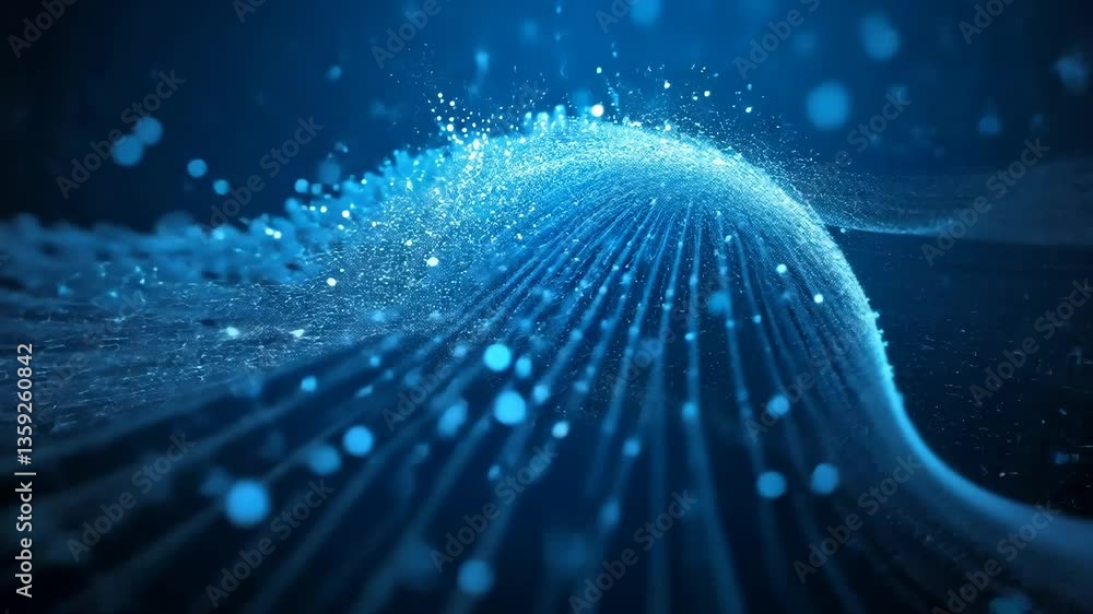 Abstract blue digital wave with sparkling particles and bokeh effects on dark backgroundWall mural