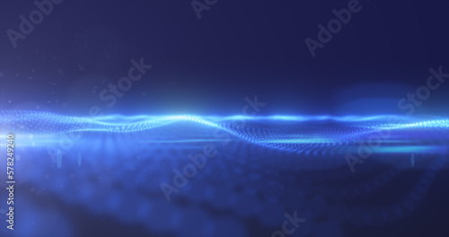 Wall mural abstract blue energy surface with magic waves from particles and dots with blur and glow effect abst