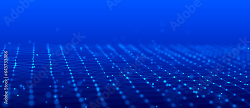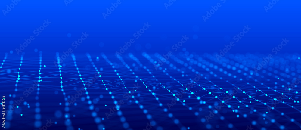 Wall mural abstract blue futuristic background. technological wave of information data flow. 3d rendering.
