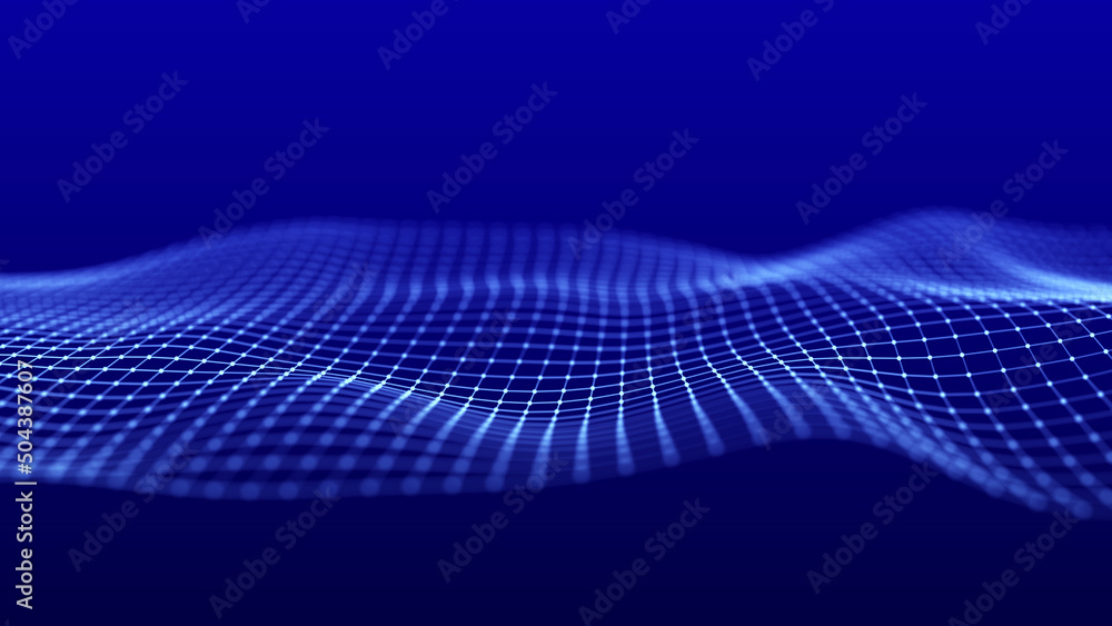 Wall mural abstract blue futuristic background. technological wave of information data flow. 3d rendering.