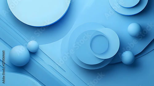 Wall mural abstract blue geometric background with circles and spheres. minimalist design with clean lines and  - Wall murals Wall mural abstract blue geometric background with circles and spheres. minimalist design with clean lines and - Wall murals