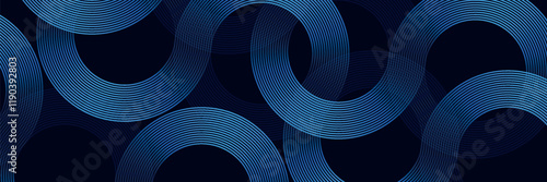 Wall mural abstract blue geometric lines glowing on dark blue background. modern shiny blue circle lines patter