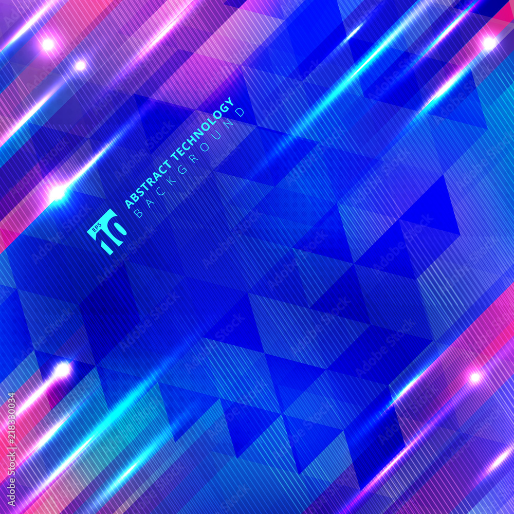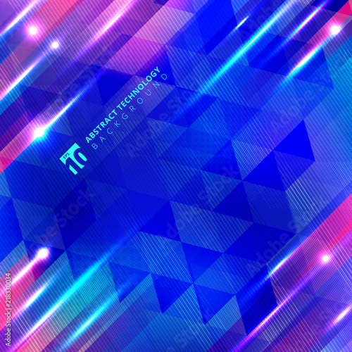The watermark will not be included on Wall mural.: Abstract blue geometric motion with lighting glow technology colorful on lines and triangles pattern