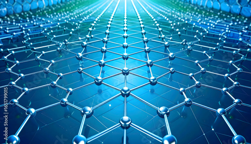 Wall mural abstract blue geometric network structure with connected nodes in futuristic perspective