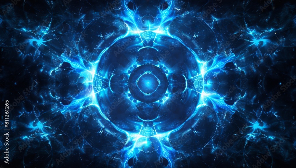 Wall mural abstract blue glowing background with circular shapes and lightning effects, symmetrical composition