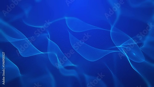 Wall mural abstract blue gradient mesh grid slow flowing fractal waves visualization. 3d video loop decorative