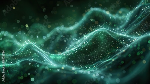 Wall mural abstract blue green technology background with a cyber network grid and connected particles artifici