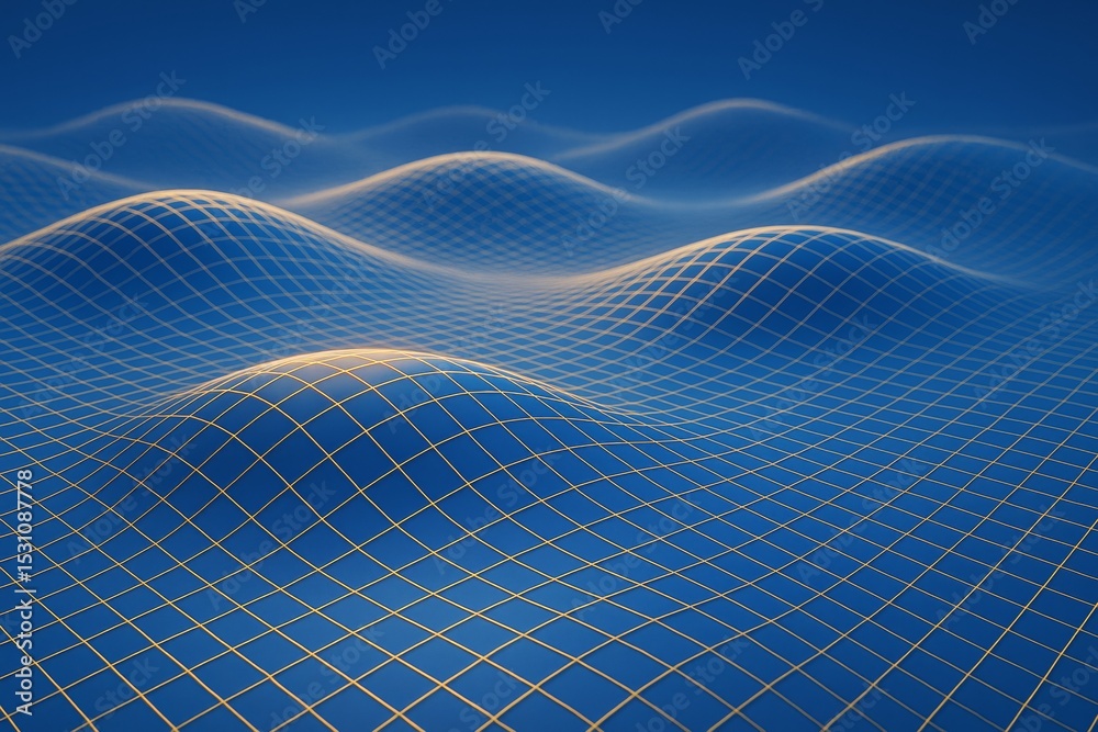 Wall mural : Abstract blue grid waves with glowing lines forming a dynamic digital landscape over smooth undulati