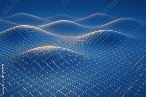 The watermark will not be included on Wall mural.: Abstract blue grid waves with glowing lines forming a dynamic digital landscape over smooth undulati