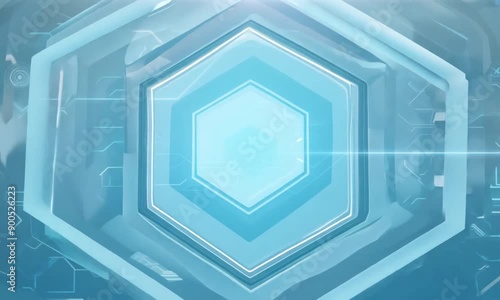 Wall mural abstract blue hexagon technology background: a futuristic, abstract design with a blue hexagon at th - Wall murals Wall mural abstract blue hexagon technology background: a futuristic, abstract design with a blue hexagon at th - Wall murals