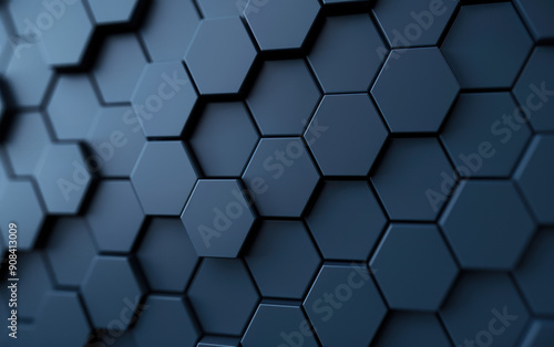 The watermark will not be included on Wall mural.: Abstract blue hexagonal background with geometric pattern - modern and futuristic design for digital,