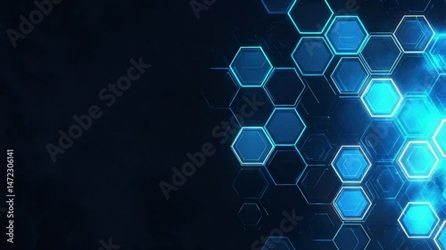 Wall mural abstract blue hexagonal pattern background with glowing light effects and modern digital elements fo - Wall murals Wall mural abstract blue hexagonal pattern background with glowing light effects and modern digital elements fo - Wall murals