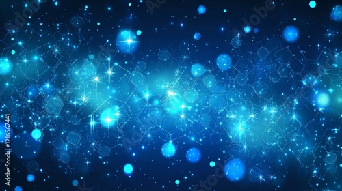 Wall mural abstract blue molecule background featuring interconnected atomic structures and glowing particles,  - Wall murals Wall mural abstract blue molecule background featuring interconnected atomic structures and glowing particles, - Wall murals