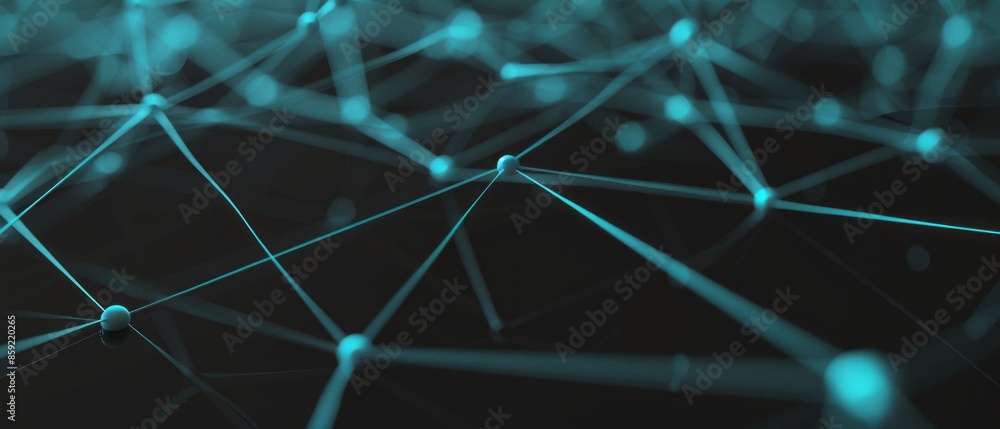 The watermark will not be included on Wall mural.: Abstract blue network lines interconnected with nodes against a dark background