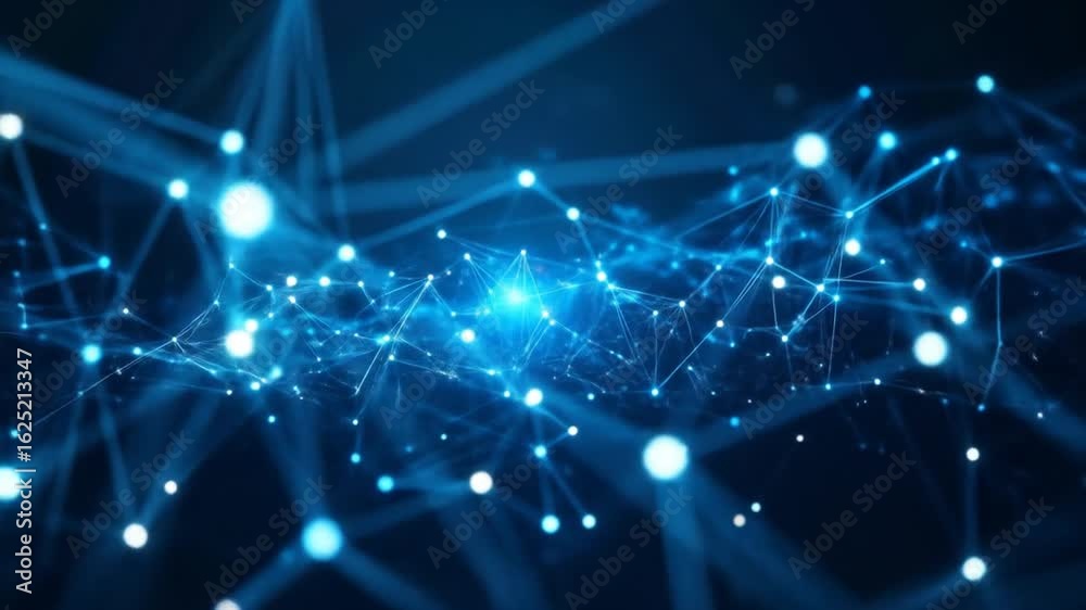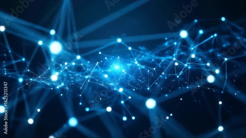 Wall mural : Abstract blue network of connected dots and lines illustrating data communication and digital connec