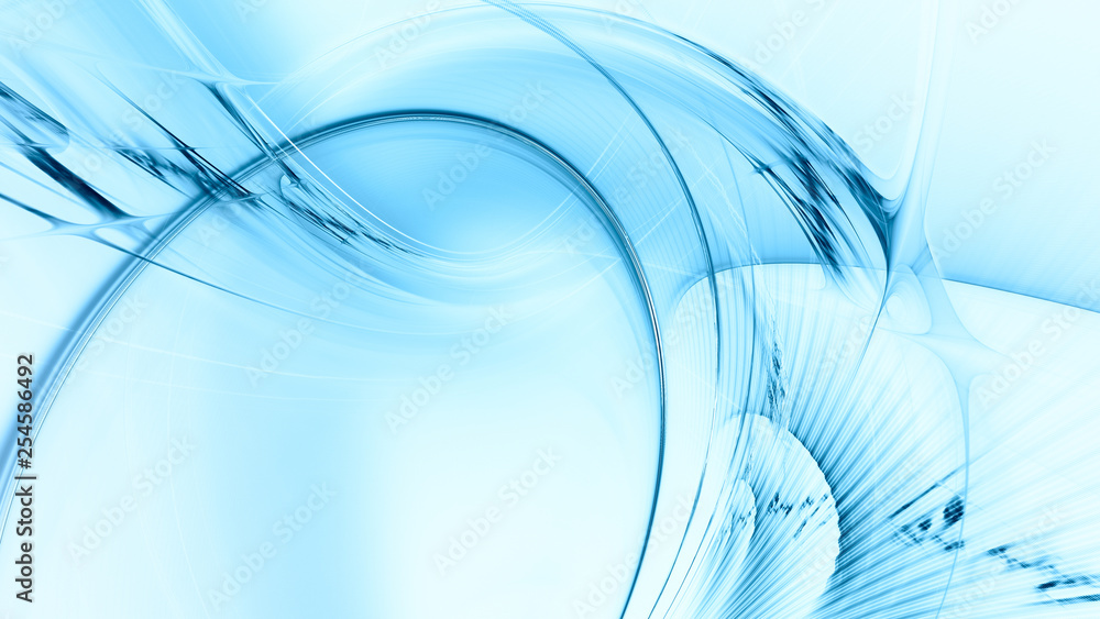 Wall mural abstract blue on white background texture. dynamic curves ands blurs pattern. detailed fractal graph