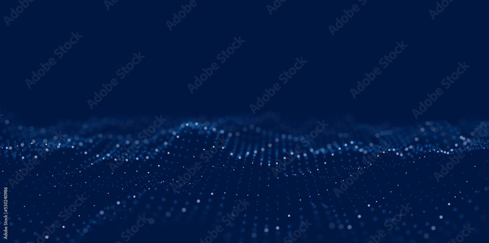 Abstract blue particle background - flow wave with dot landscape - digital data structure - future meshWall mural