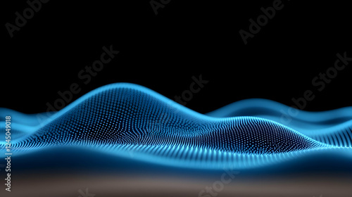 The watermark will not be included on Wall mural.: Abstract blue particle wave flows smoothly across a dark background -