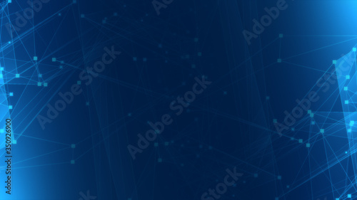 Wall mural abstract blue polygon tech network with connect technology background. abstract dots and lines textu
