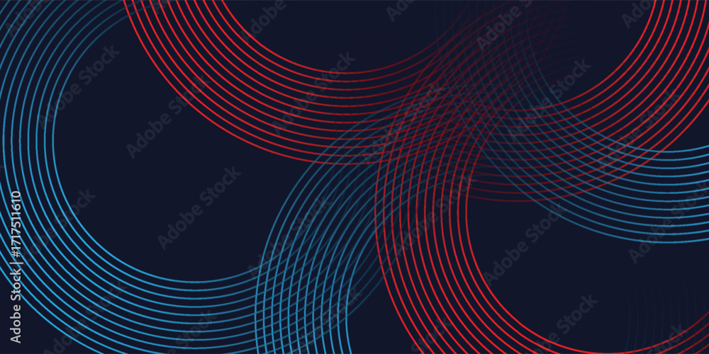 Wall mural abstract blue red gradient background with glowing geometric lines. modern shiny circle line pattern
