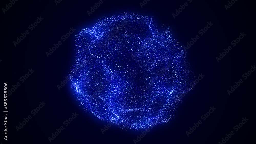 The watermark will not be included on Wall mural.: Abstract blue sphere with connecting dots - wireframe technology sphere of particles - big data visual