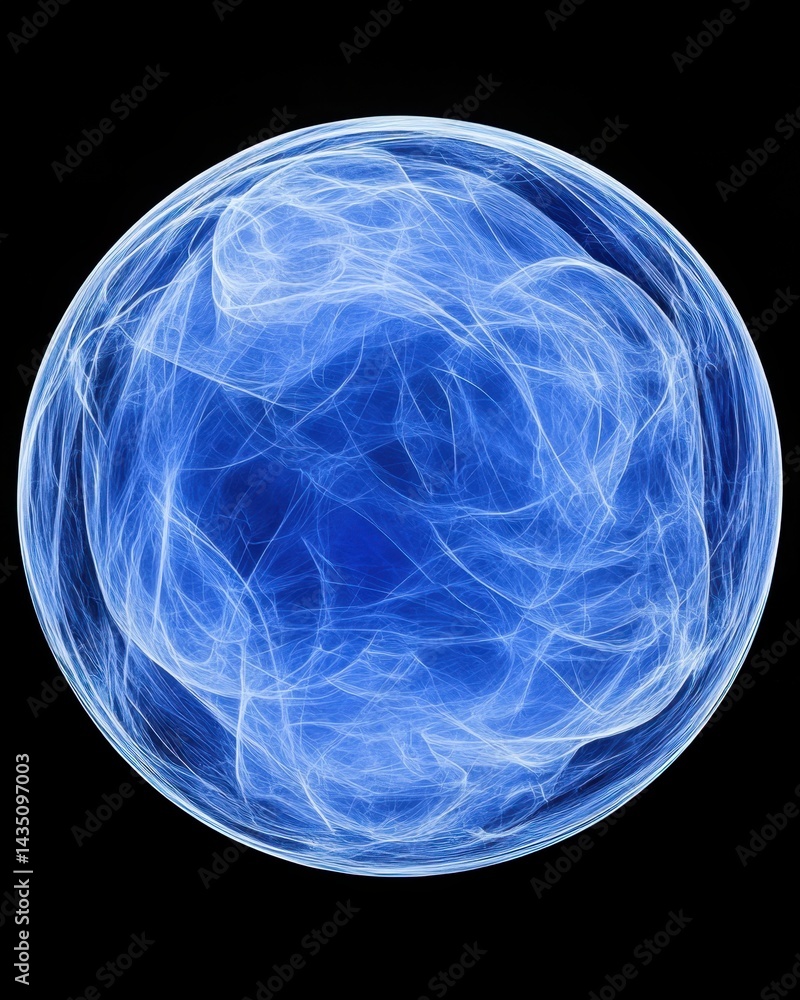The watermark will not be included on Wall mural.: Abstract blue sphere with intricate glowing lines creating a mesmerizing digital art composition aga