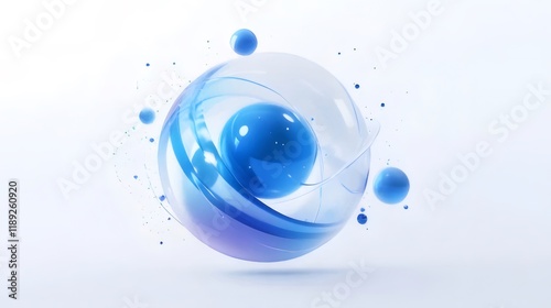 The watermark will not be included on Wall mural.: Abstract blue sphere with swirling transparent rings and small spheres -