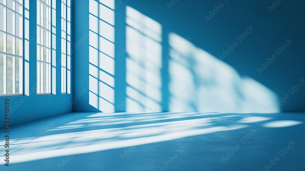 The watermark will not be included on Wall mural.: Abstract blue studio background for product presentation empty room with shadows of window 3d room w