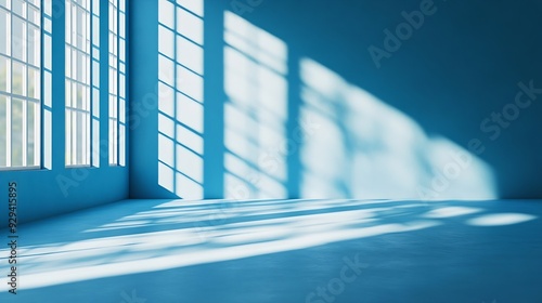Abstract blue studio background for product presentation empty room with shadows of window 3d room wWall mural