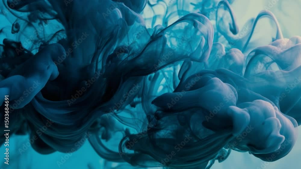 The watermark will not be included on Wall mural.: Abstract blue swirls of ink and water creating beautiful patterns with soft fluid motion