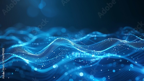 Wall mural abstract blue tech background with digital waves, dynamic network system.