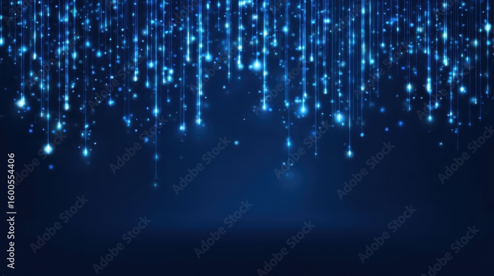 The watermark will not be included on Wall mural.: Abstract blue technology background with glowing digital light - stream of falling particle on dark b